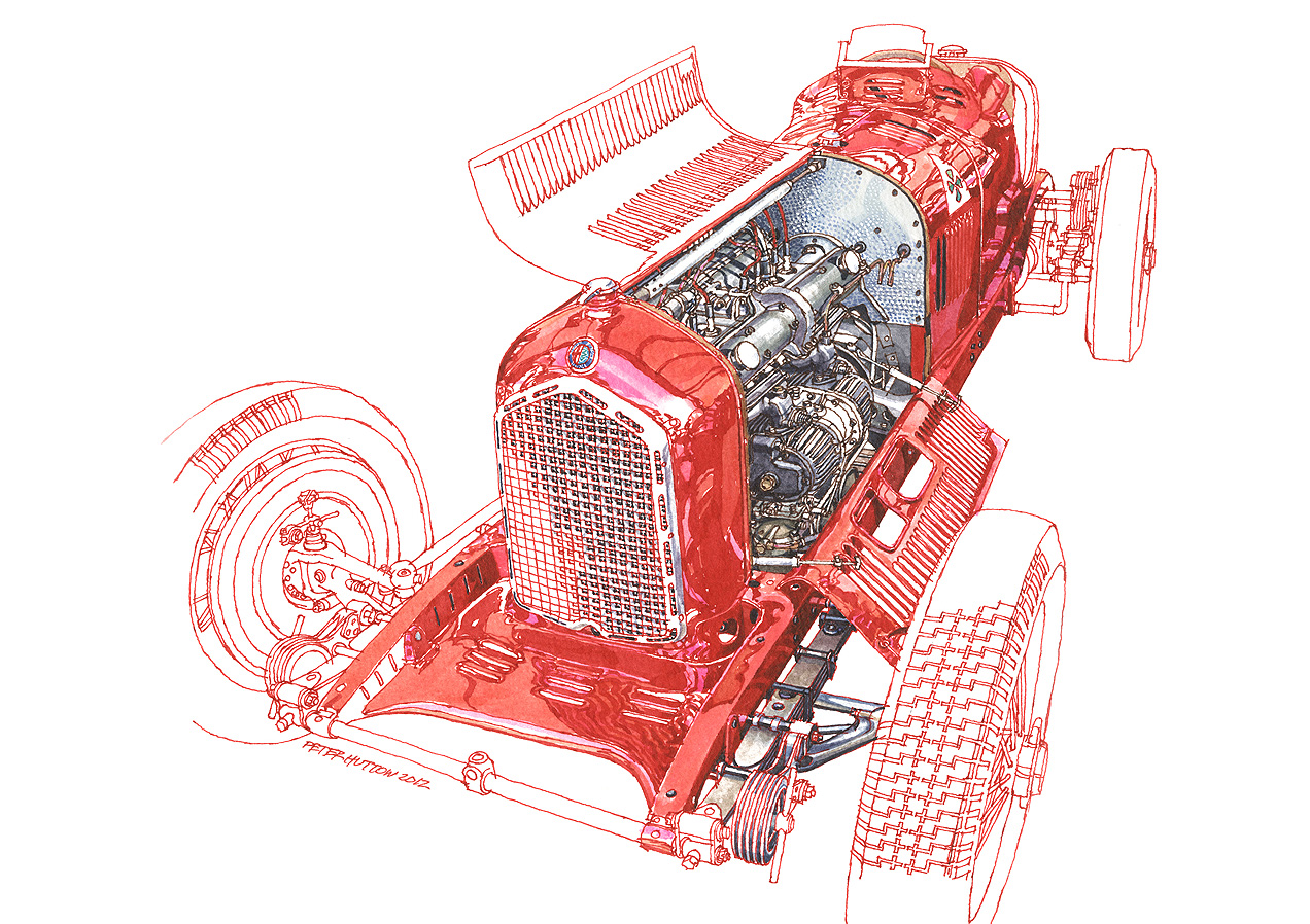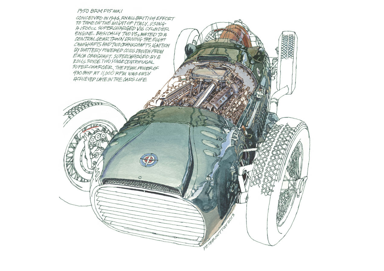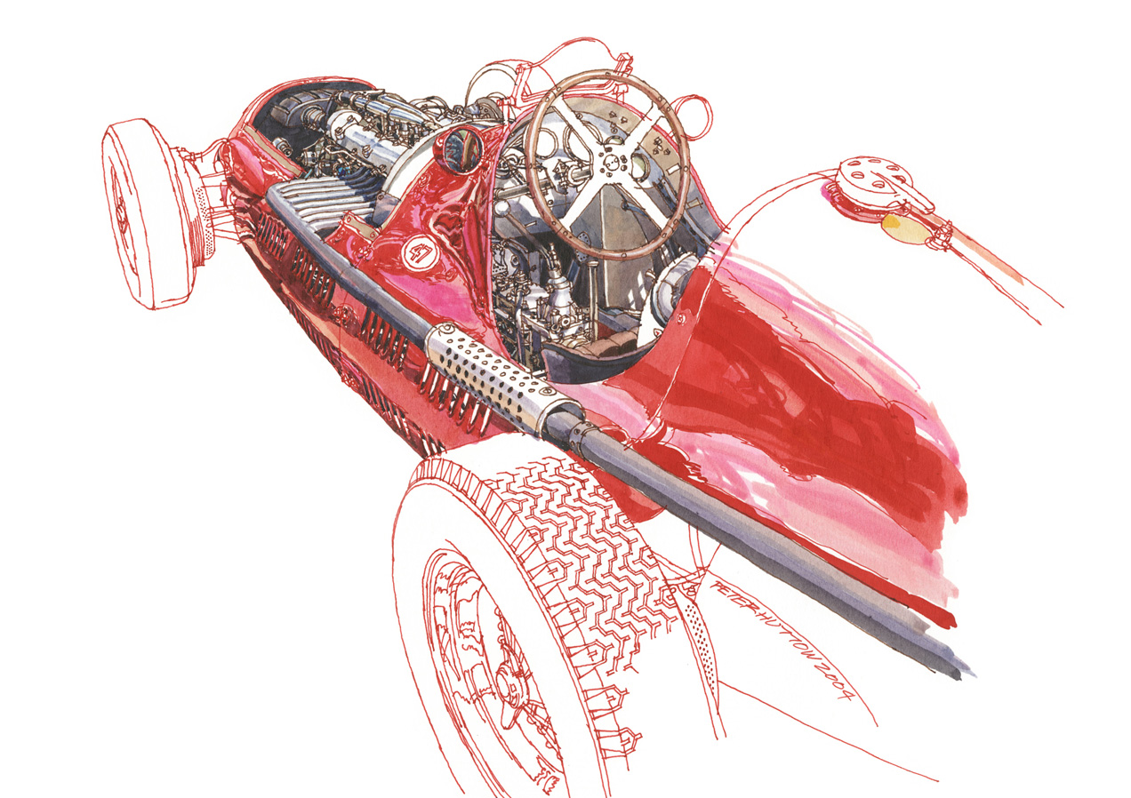 From an original drawing by Peter Hutton © 2015. Drawn from photos taken at the Goodwood Festival of Speed.