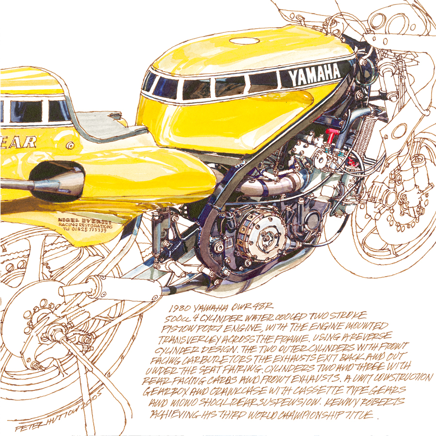 from an original drawing by Peter Hutton with many thanks to Chris Wilson for getting the Yamaha out (no easy task) for me to sketch and photograph.© 2010.